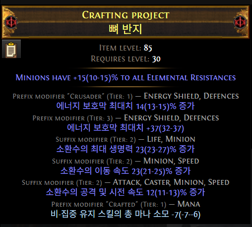 그래서 반지 2개를 십자군 영향력을 활용해서 에너지 보호막 관련 속성과 소환수 관련 속성을 챙겨보고 싶은데요.