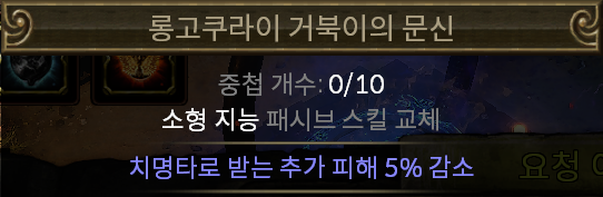 아직 패시브 트리에 대한 고민이 있기 때문에 저렴한 문신을 사용하였습니다.