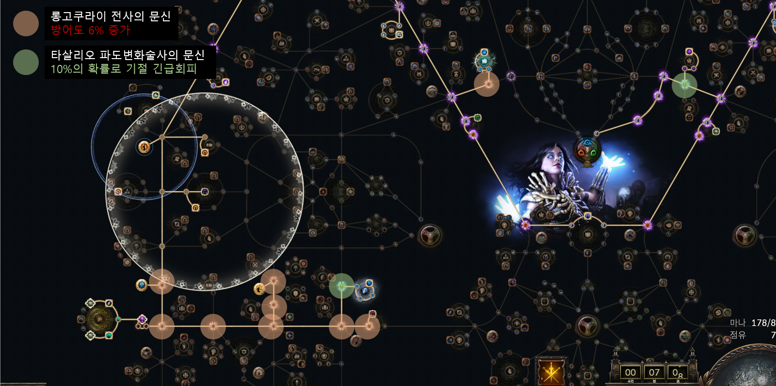 드디어, 이 빌드의 최종 세팅이라고도 볼 수 있는 허영의 정점 키스톤을 활용하는 문신 세팅을 하였습니다.