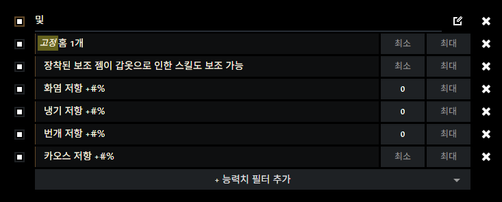 아이템 레벨이 83 레벨 이상인 것을 구해서 변화의 오브 확장의 오브 바알 오브를 이용해서 제작해도 되지만, 우리가 원하는 특정 속성 1개가 분열된 것을 구매해서 제작을 하는 것도 방법입니다.