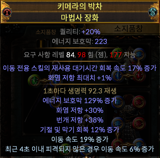 마피는 이 빌드에서만 활용하는 아이템이 아닌, 대부분의 모든 빌드에서 없어서 못쓰는 아주 활용도가 높고 빌드 편의성을 높여주는 POE에서 가장 가치가 높은 아이템이라고 생각하시면 됩니다.