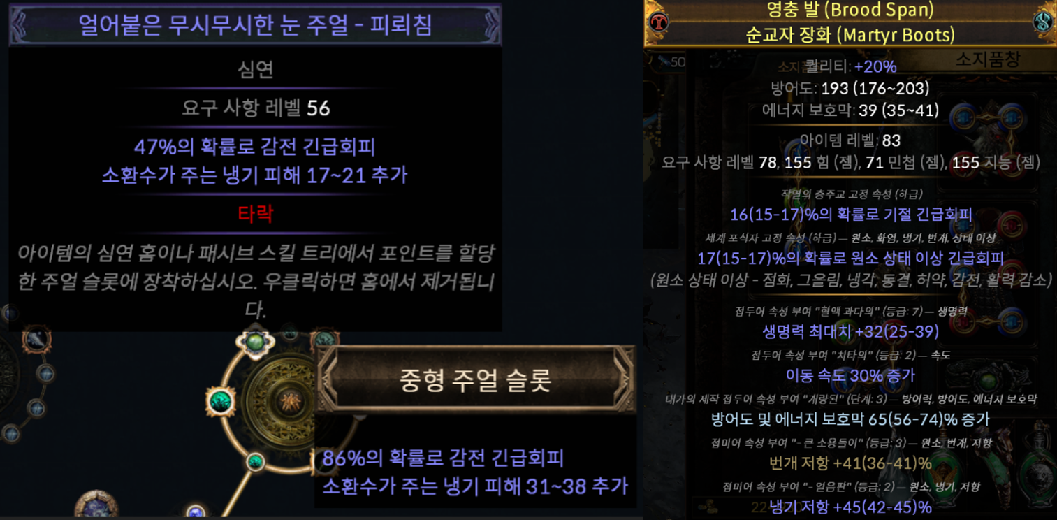 기존에 무시무시한 눈 주얼과 장화에서 번거롭게 세팅해야 했던 것들을 다르게 더 세팅을 할 수 있게 되니까, 꽤 나쁘지 않은 선택지이기도 합니다.