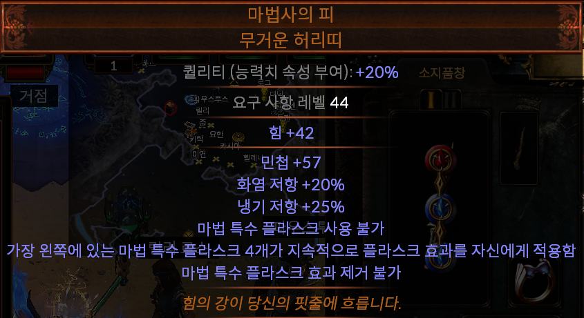 그리고 나머지 플라스크 1개는 꼭 오리아스의 종말 플라스크를 활용해서 답답한 맵핑 능력을 꼭 보완해주어야 합니다.